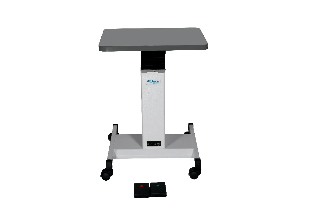 The IT-2000 Motorised Instrument Table is the perfect solution for mounting all ophthalmic and optician diagnostic equipment. Built with aesthetic contours and a sturdy design, it seamlessly blends into any clinical setting. The table offers smooth, silent vertical height adjustment via foot control, ensuring ergonomic convenience during examinations. Its high-grade castors provide safe and steady mobility, while its design allows easy transformation from a transportable unit to a stable operation table—making it a reliable and multifunctional addition to any eye care practice.